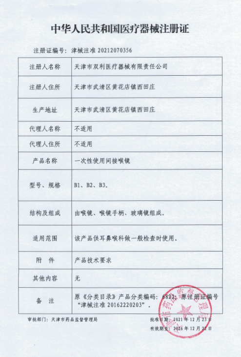 您所在的位置:主頁>>喉鏡注冊證